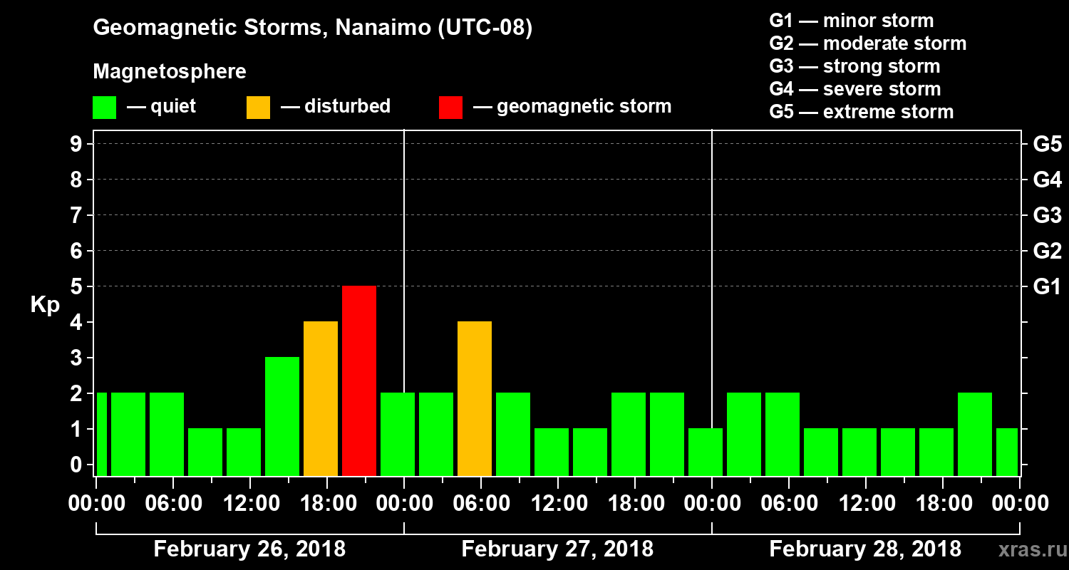 Geomagnetic storms in Nanaimo on Feb 28, 2018