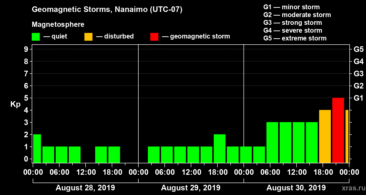Geomagnetic storms in Nanaimo on Aug 30, 2019