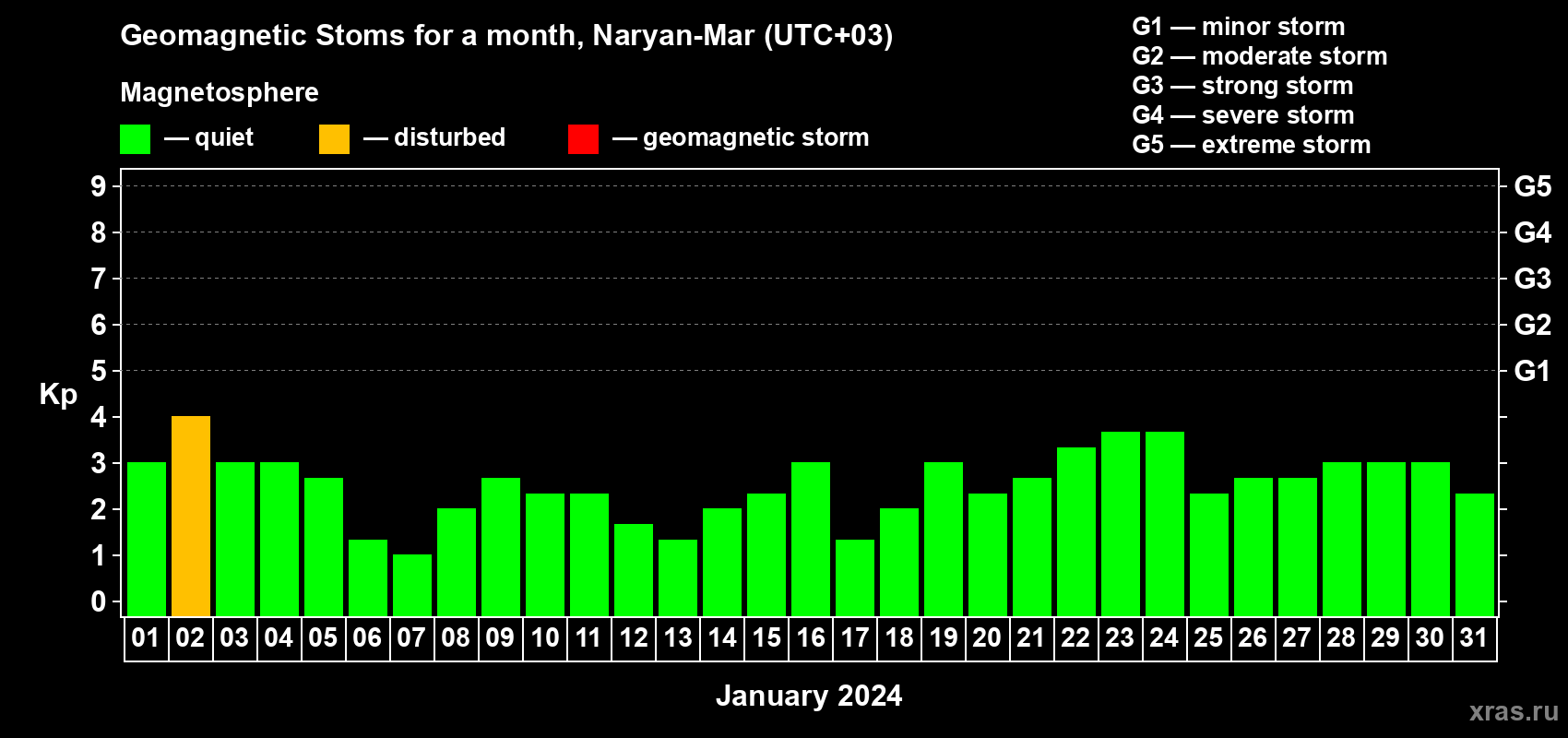 Geomagnetic storms in Naryan-Mar — Jan 02, 2024