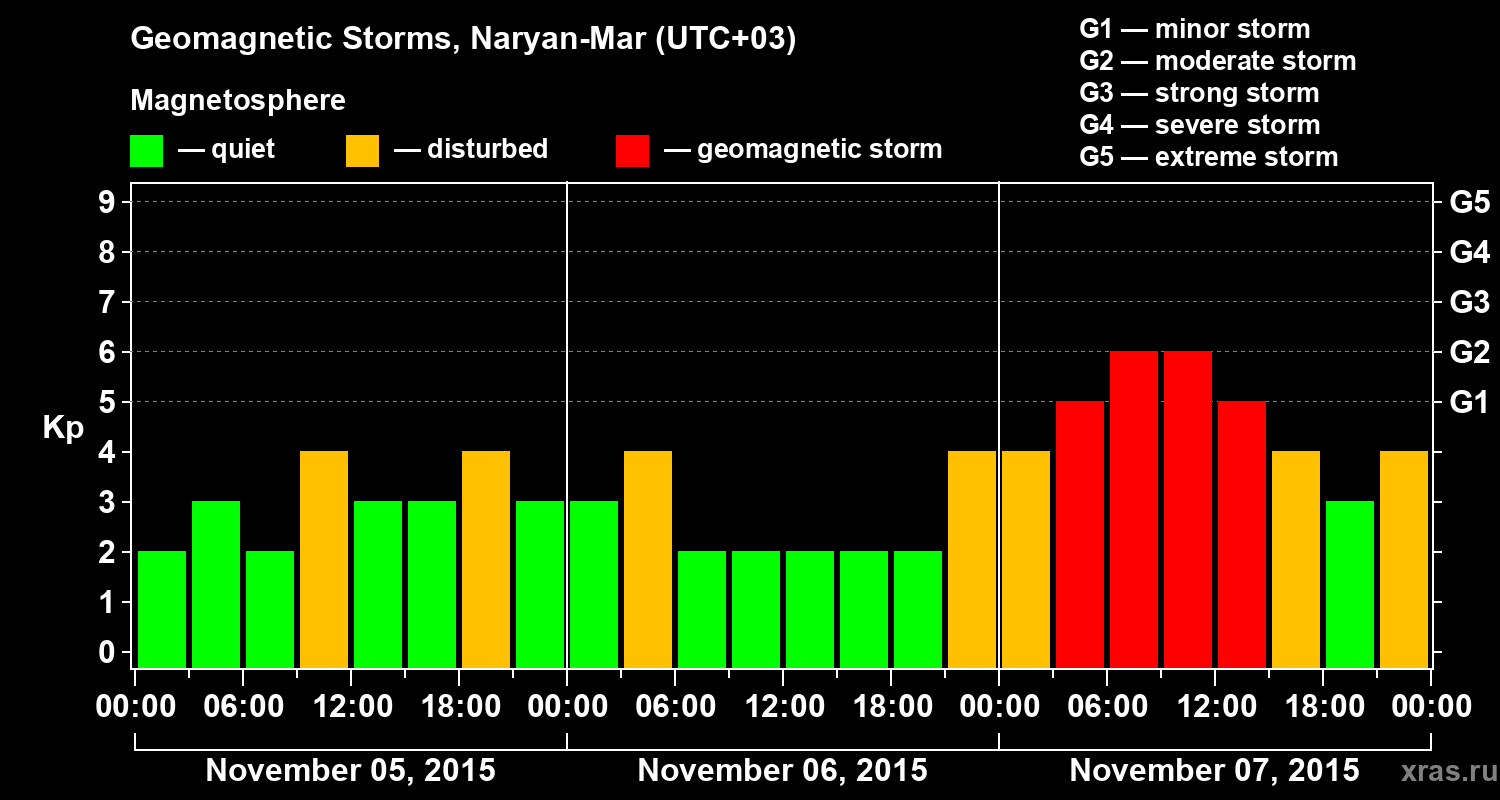 Geomagnetic storms in Naryan-Mar — Nov 07, 2015