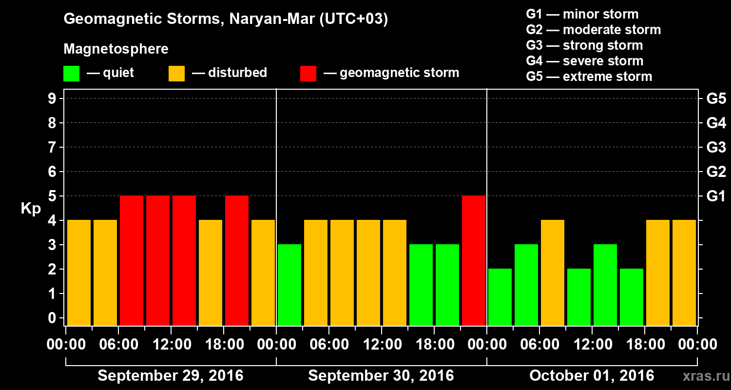 Geomagnetic storms in Naryan-Mar — Oct 01, 2016
