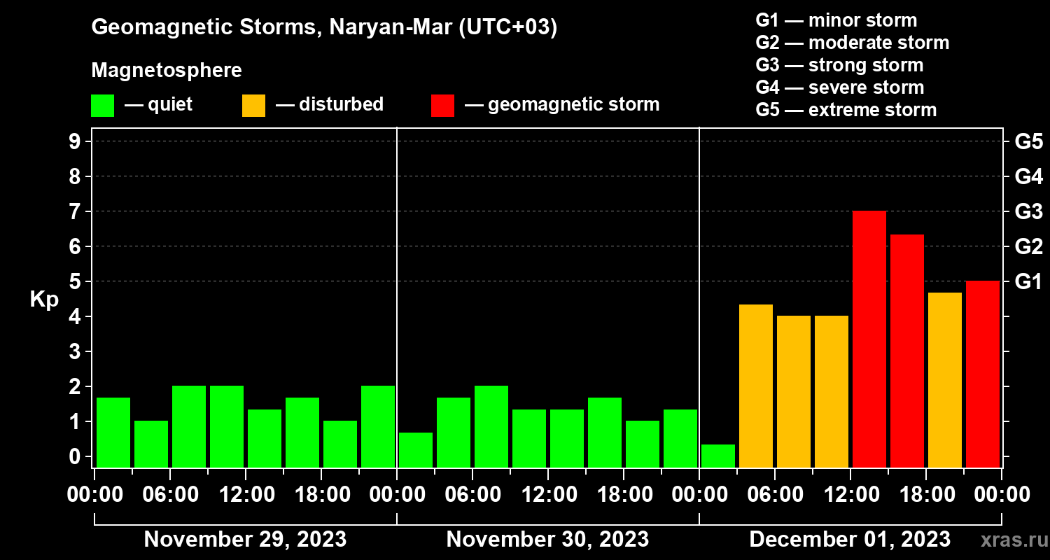 Geomagnetic storms in Naryan-Mar — Dec 01, 2023