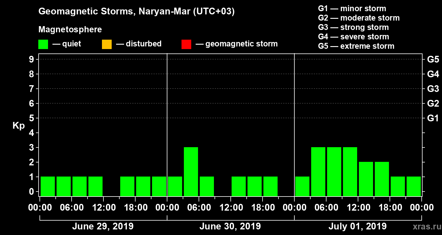Geomagnetic storms in Naryan-Mar — Jul 01, 2019