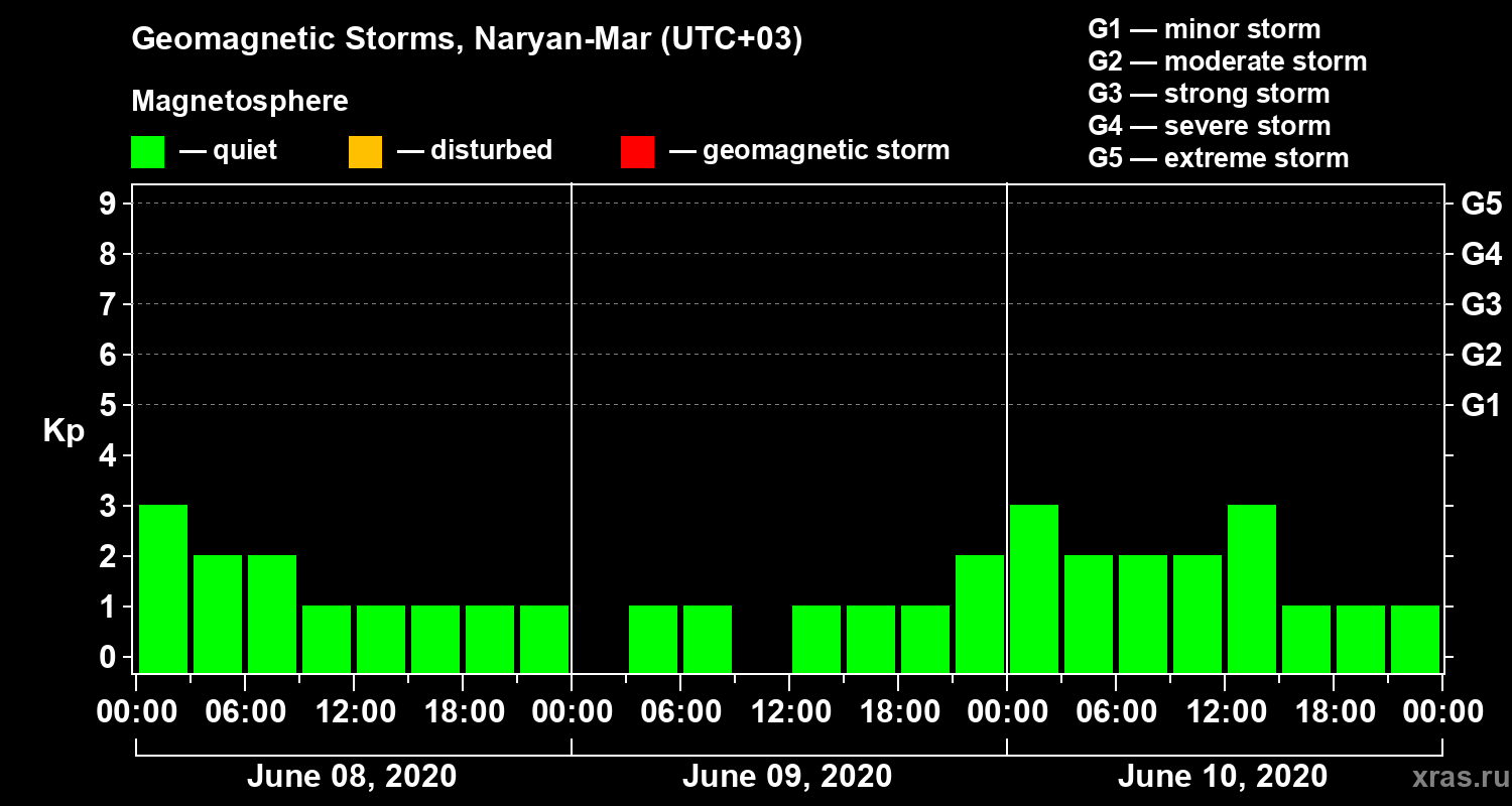 Geomagnetic storms in Naryan-Mar on Jun 10, 2020