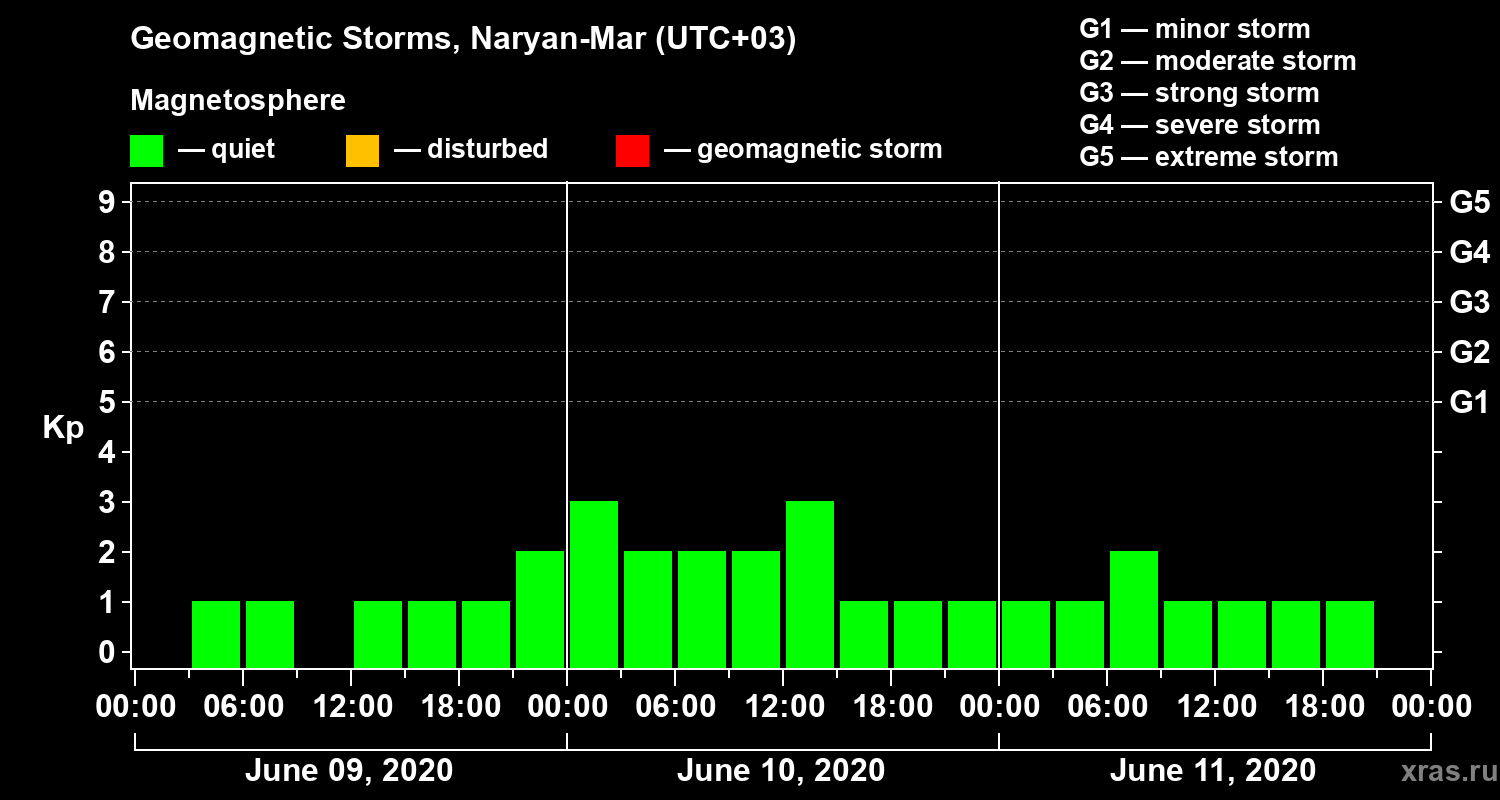 Geomagnetic storms in Naryan-Mar — Jun 11, 2020