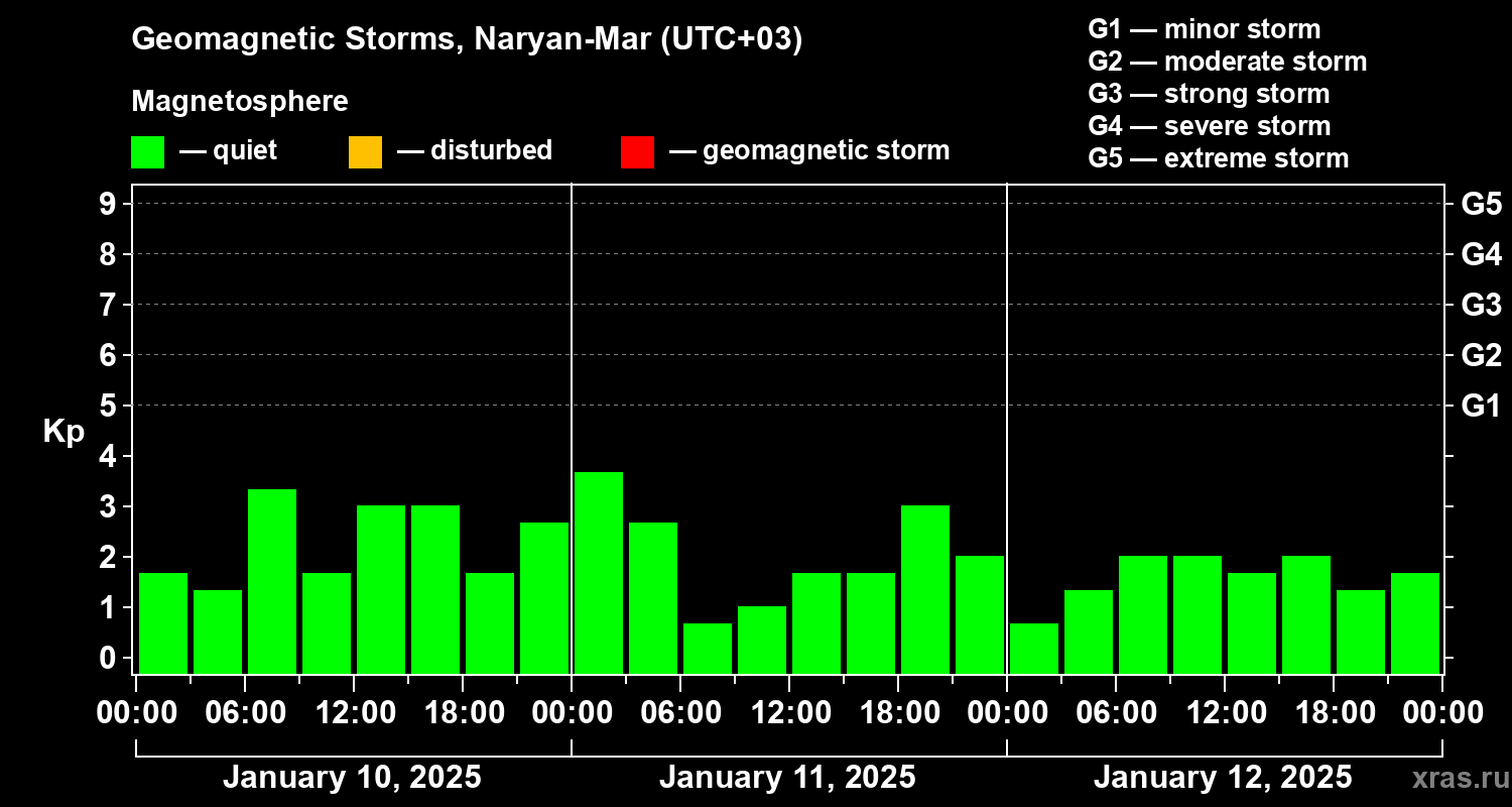 Geomagnetic storms in Naryan-Mar — Jan 12, 2025