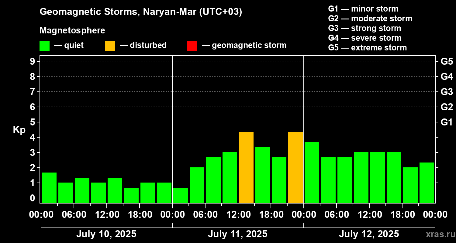 Geomagnetic storms in Naryan-Mar — Jul 12, 2025