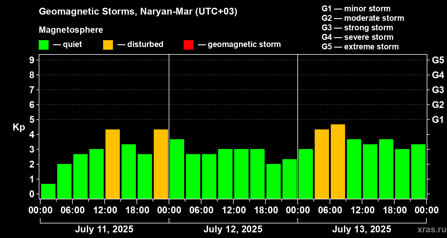 Geomagnetic storms in Naryan-Mar — Jul 13, 2025
