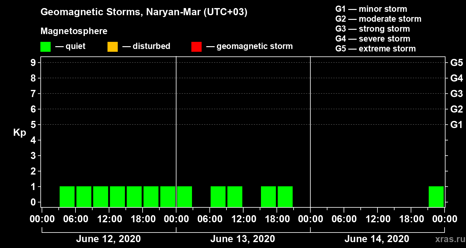 Geomagnetic storms in Naryan-Mar on Jun 14, 2020