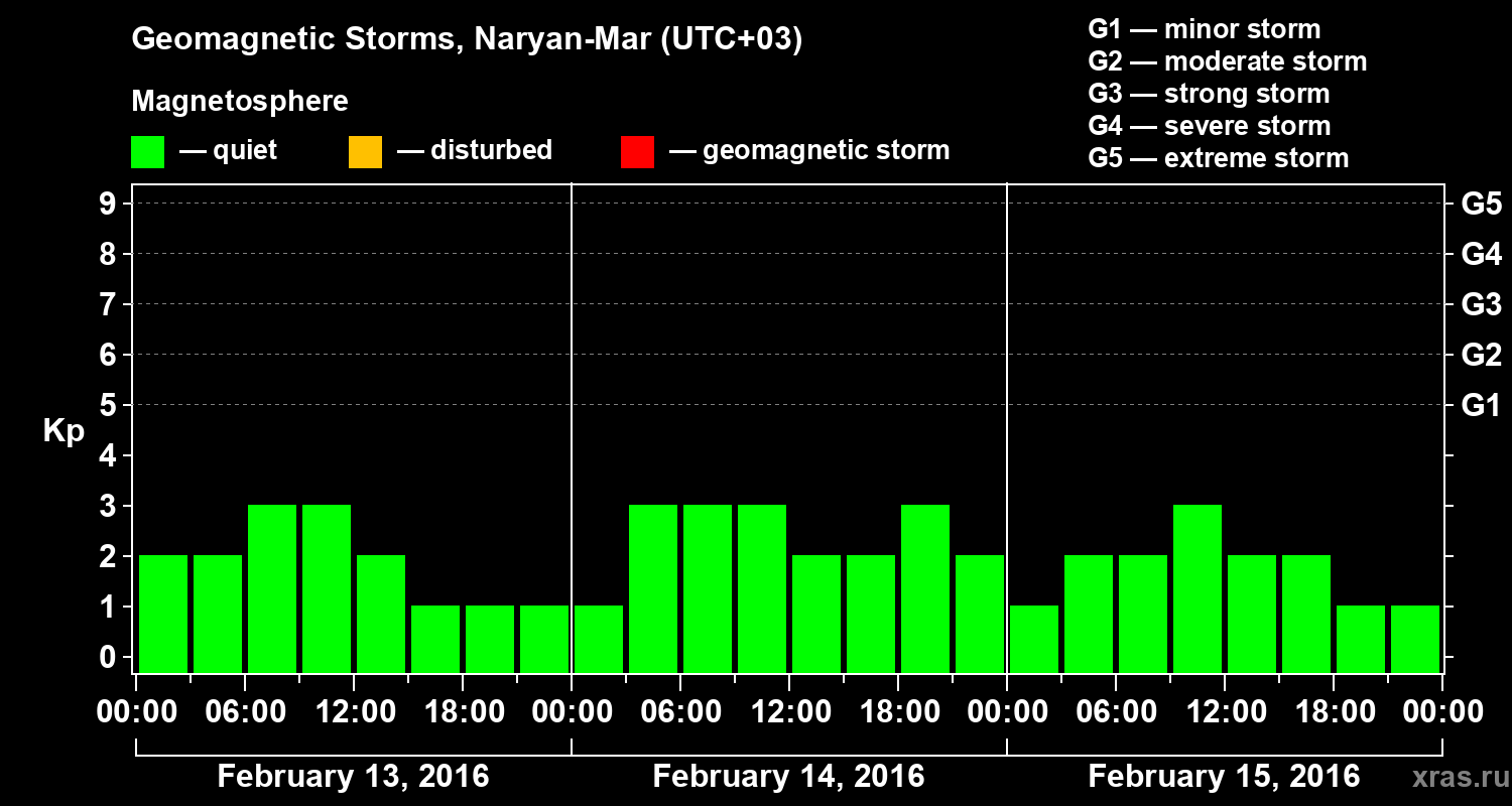 Geomagnetic storms in Naryan-Mar on Feb 15, 2016