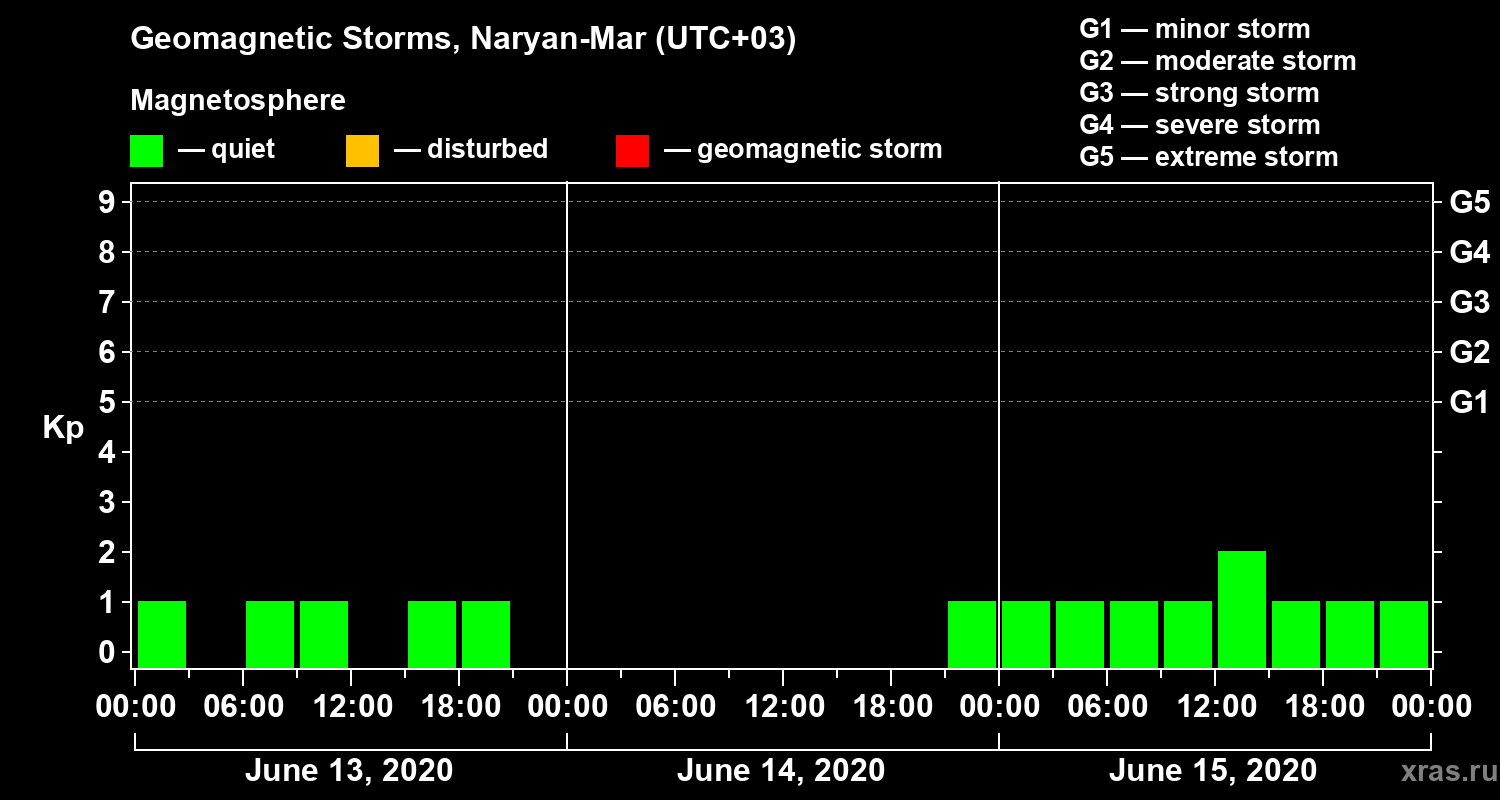 Geomagnetic storms in Naryan-Mar — Jun 15, 2020