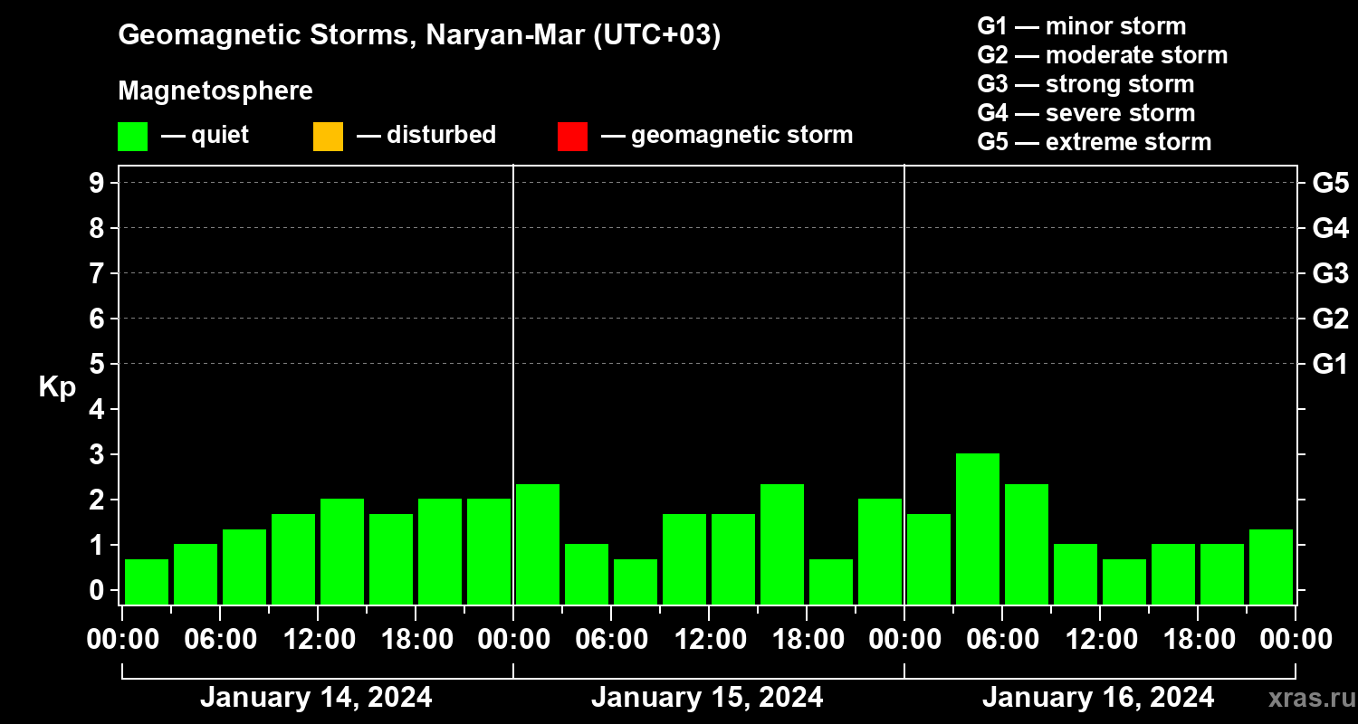 Geomagnetic storms in Naryan-Mar — Jan 16, 2024