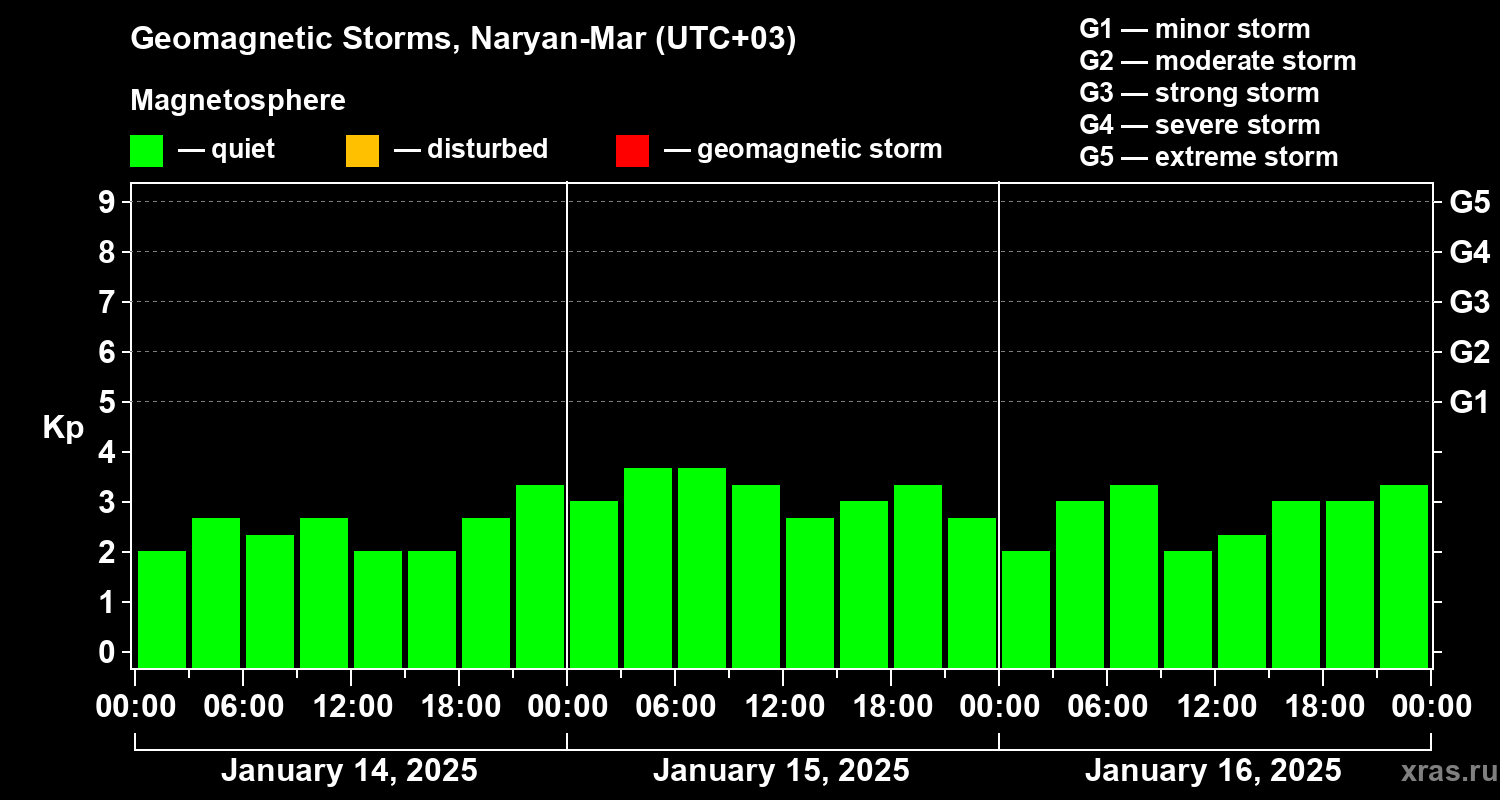 Geomagnetic storms in Naryan-Mar — Jan 16, 2025