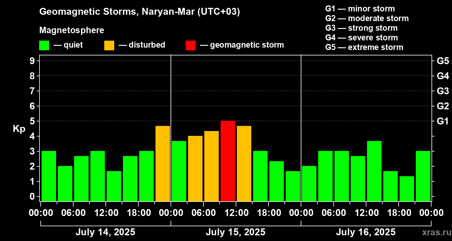Geomagnetic storms in Naryan-Mar — Jul 16, 2025