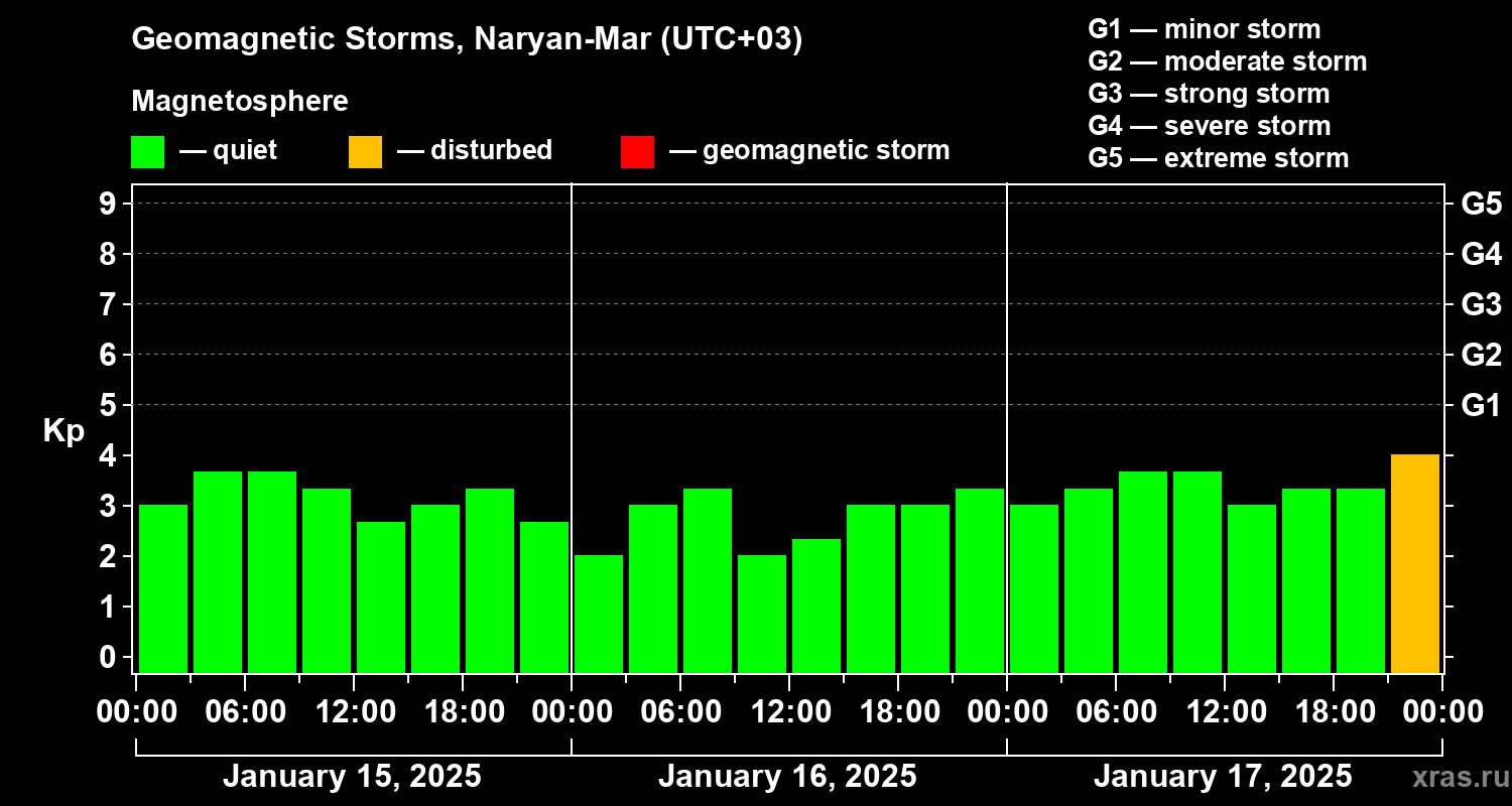 Geomagnetic storms in Naryan-Mar — Jan 17, 2025