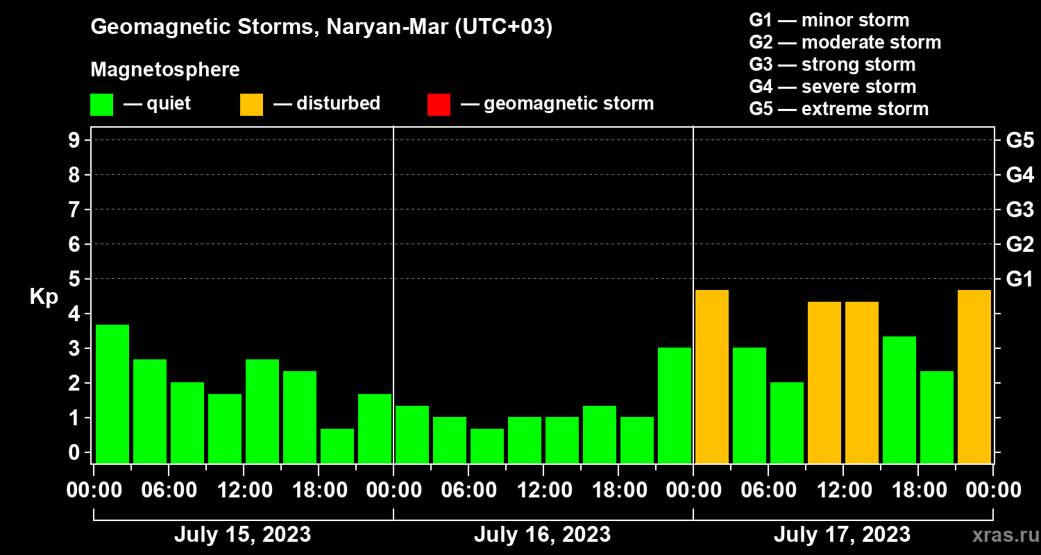Geomagnetic storms in Naryan-Mar — Jul 17, 2023