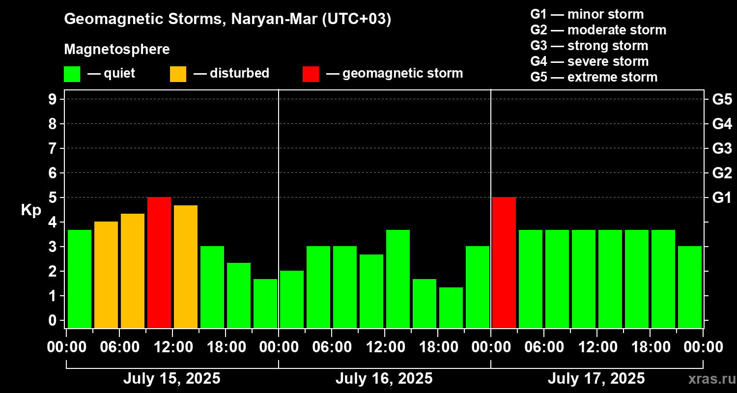 Geomagnetic storms in Naryan-Mar — Jul 17, 2025