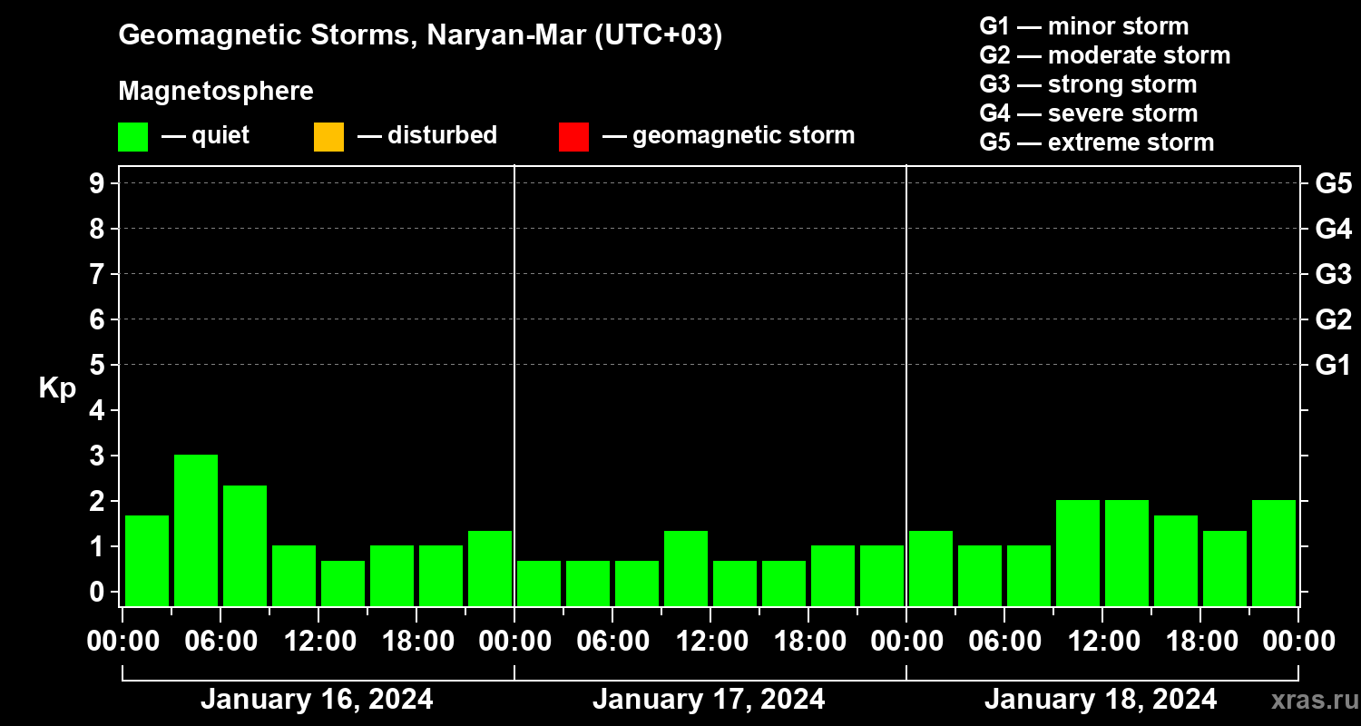 Geomagnetic storms in Naryan-Mar — Jan 18, 2024