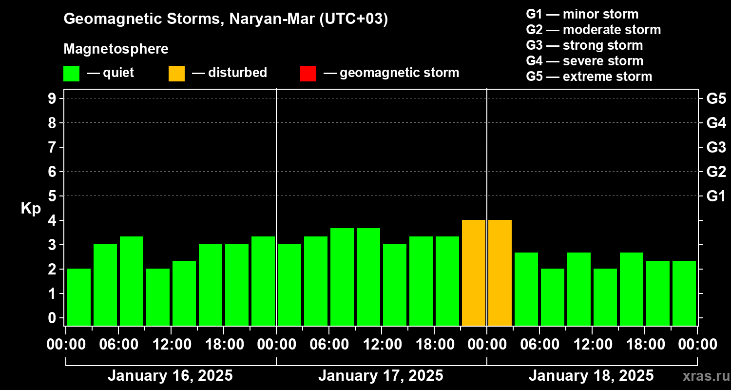 Geomagnetic storms in Naryan-Mar — Jan 18, 2025
