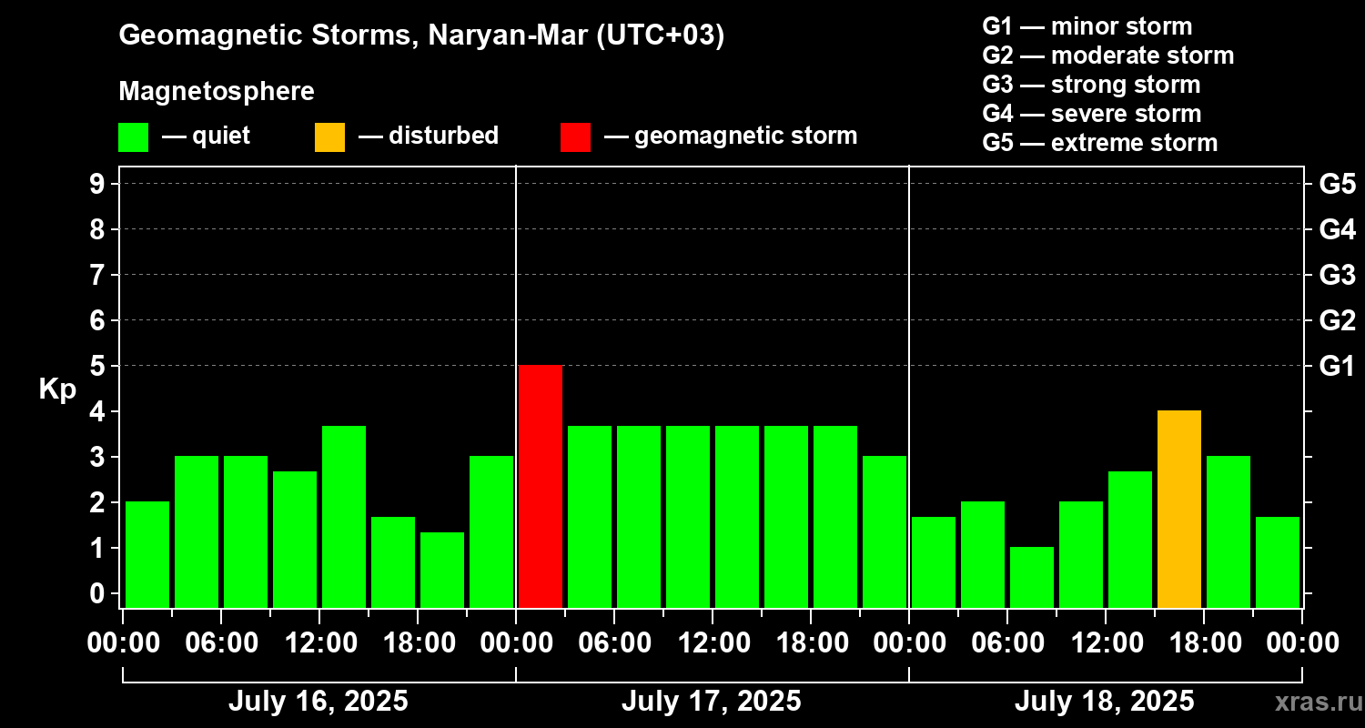 Geomagnetic storms in Naryan-Mar — Jul 18, 2025