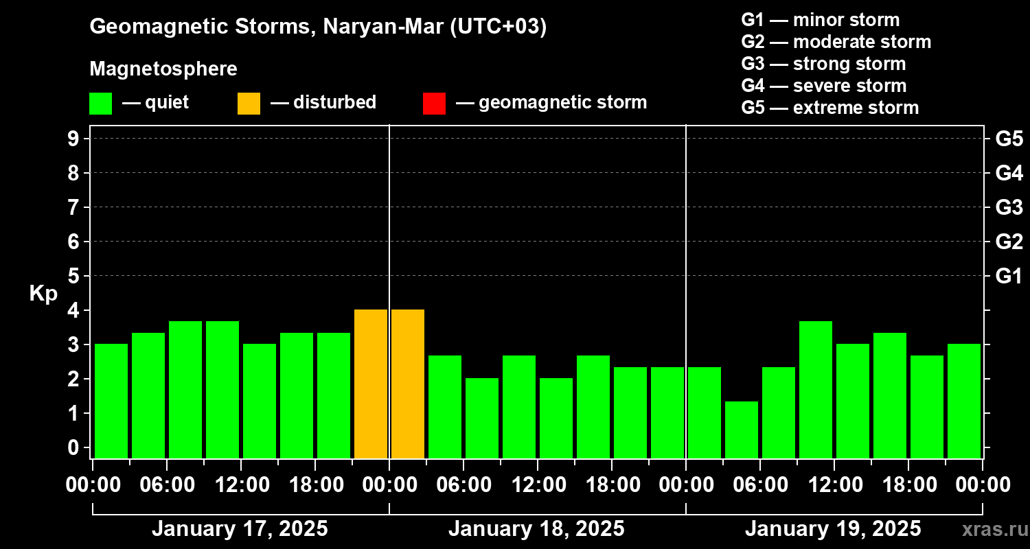 Geomagnetic storms in Naryan-Mar — Jan 19, 2025
