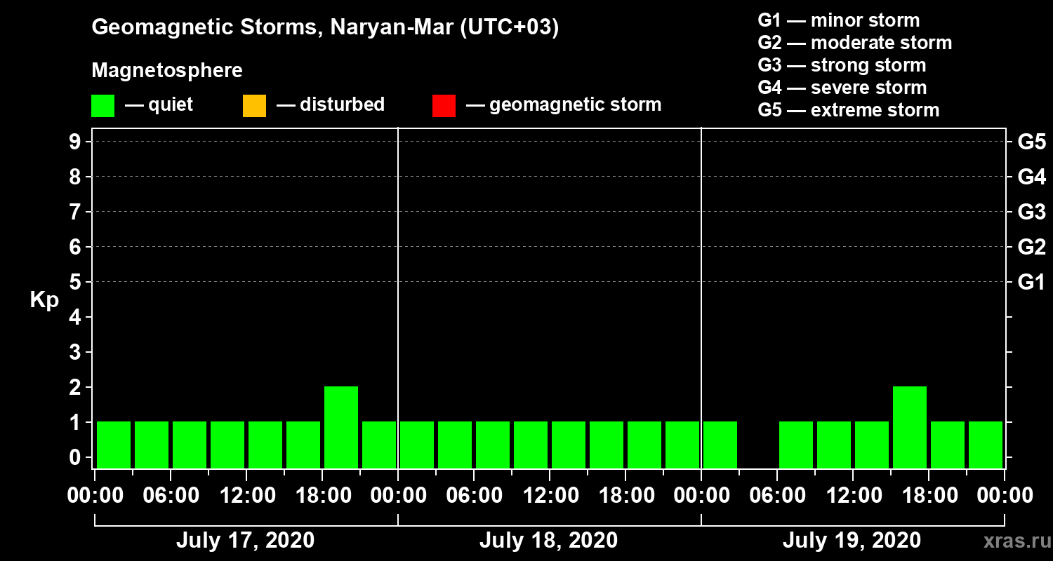 Geomagnetic storms in Naryan-Mar — Jul 19, 2020