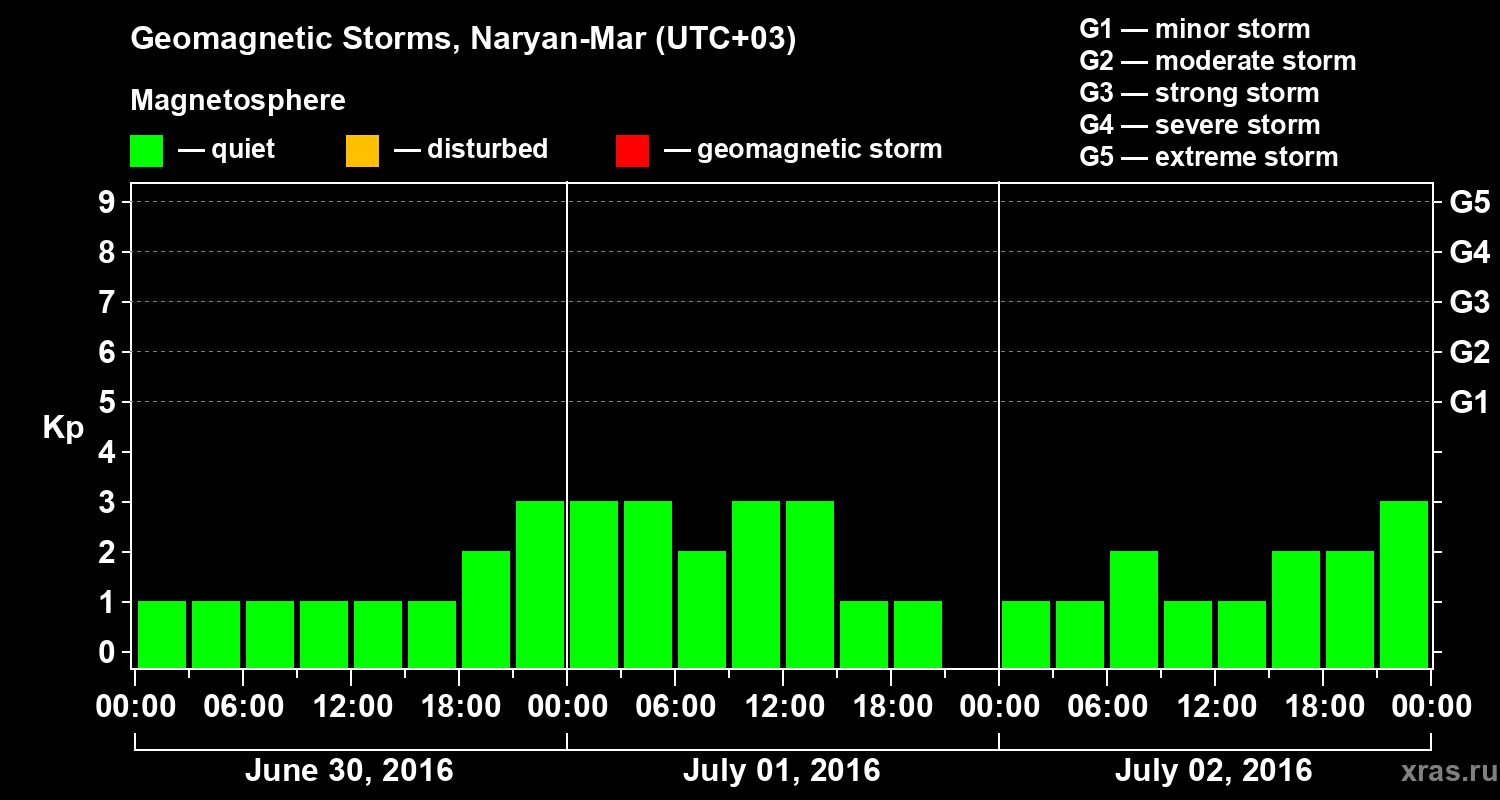 Geomagnetic storms in Naryan-Mar — Jul 02, 2016