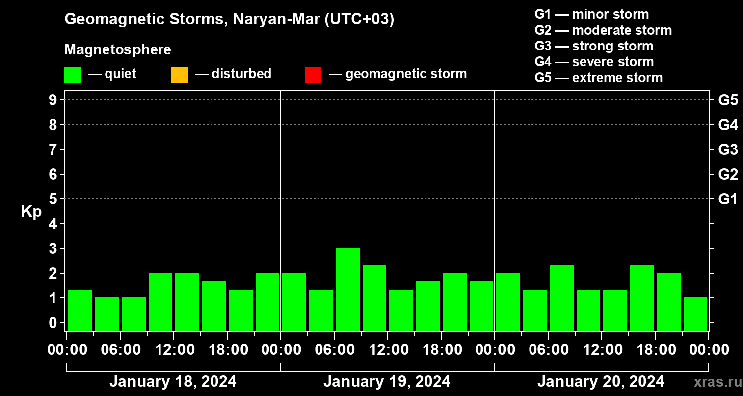 Geomagnetic storms in Naryan-Mar — Jan 20, 2024