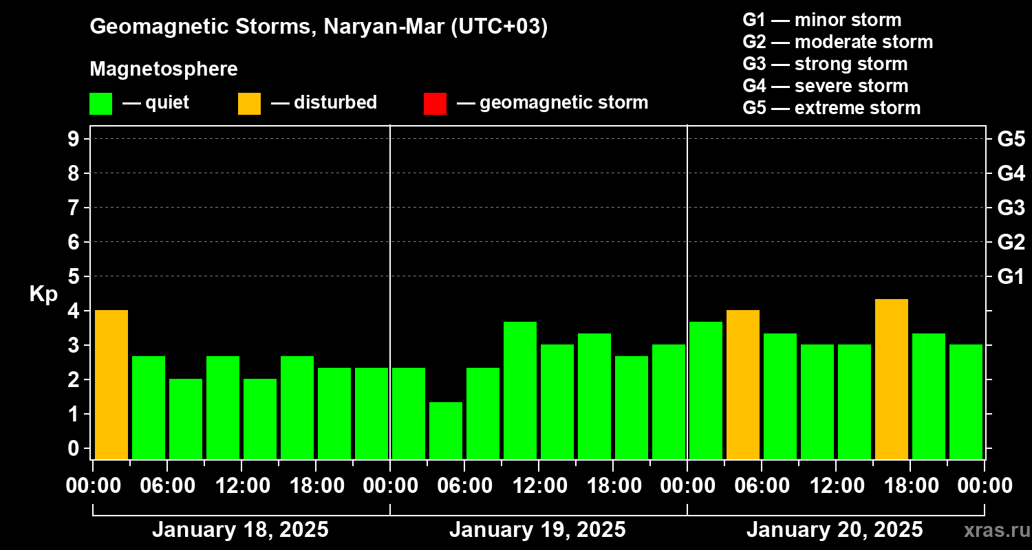 Geomagnetic storms in Naryan-Mar — Jan 20, 2025