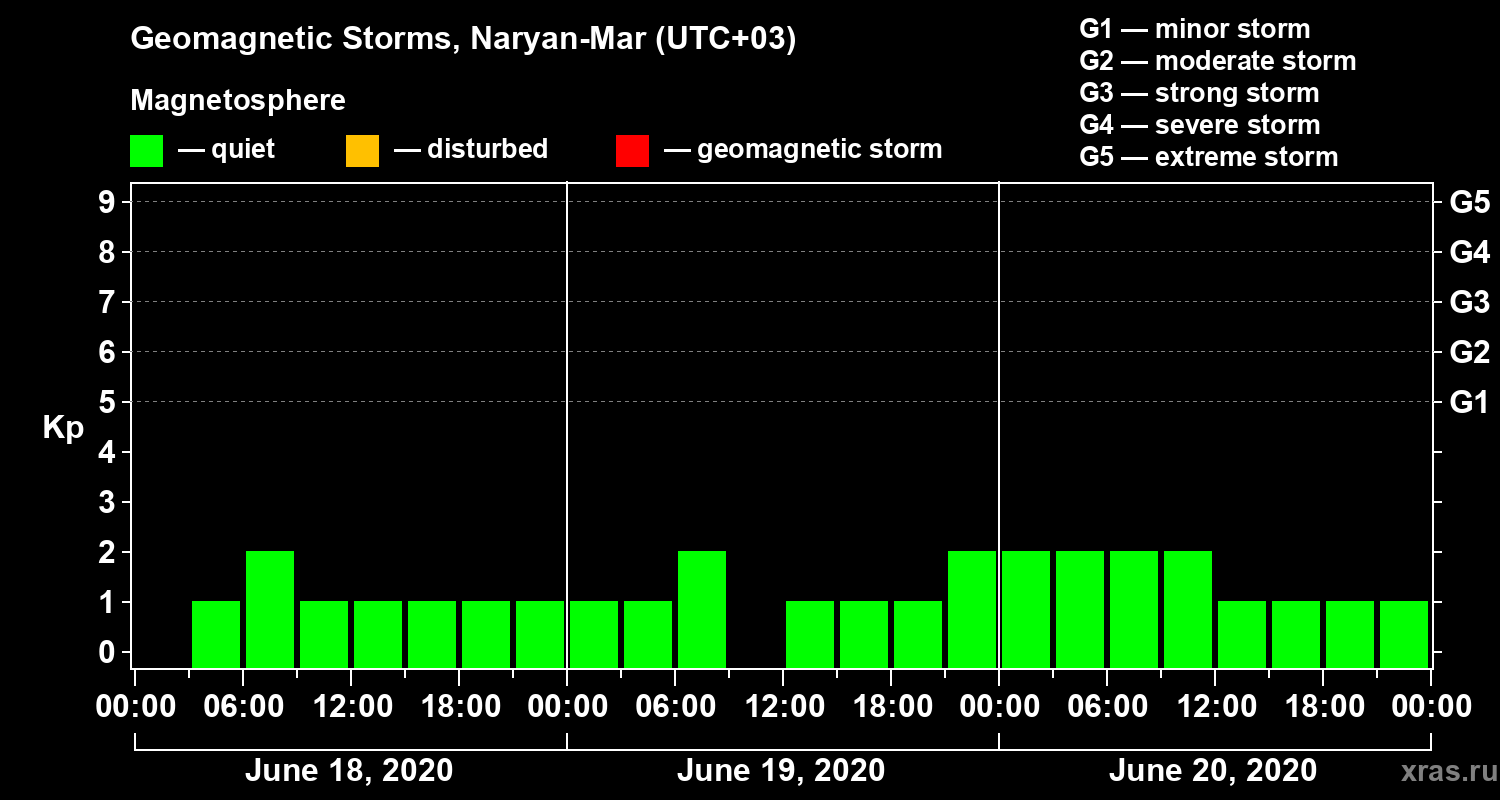 Geomagnetic storms in Naryan-Mar on Jun 20, 2020