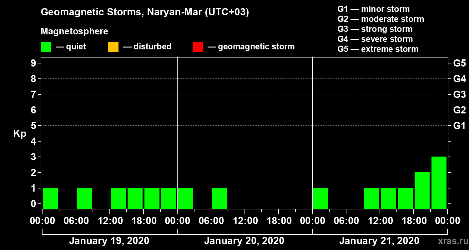 Geomagnetic storms in Naryan-Mar on Jan 21, 2020
