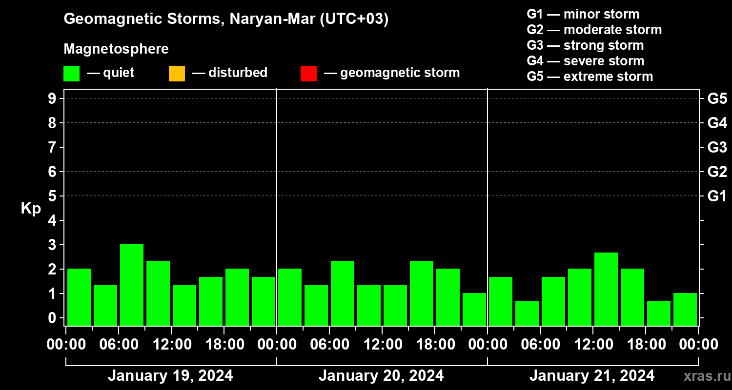 Geomagnetic storms in Naryan-Mar on Jan 21, 2024