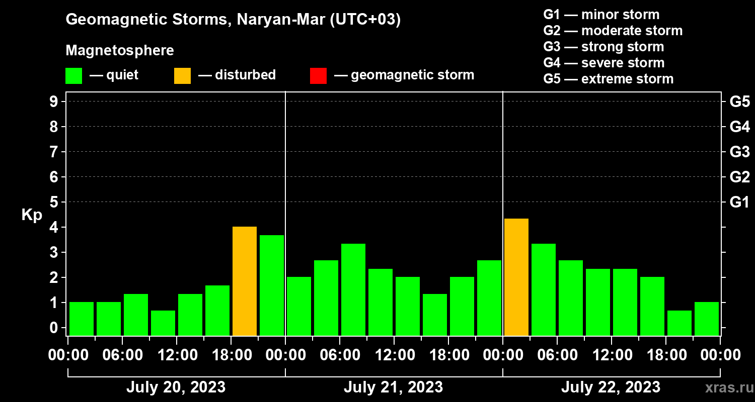 Geomagnetic storms in Naryan-Mar — Jul 22, 2023
