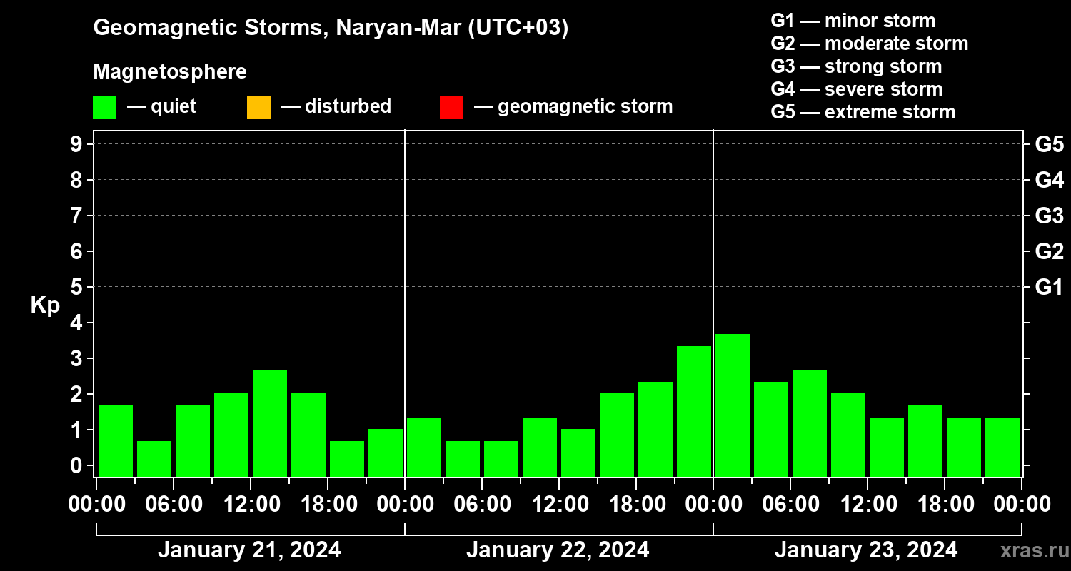 Geomagnetic storms in Naryan-Mar — Jan 23, 2024