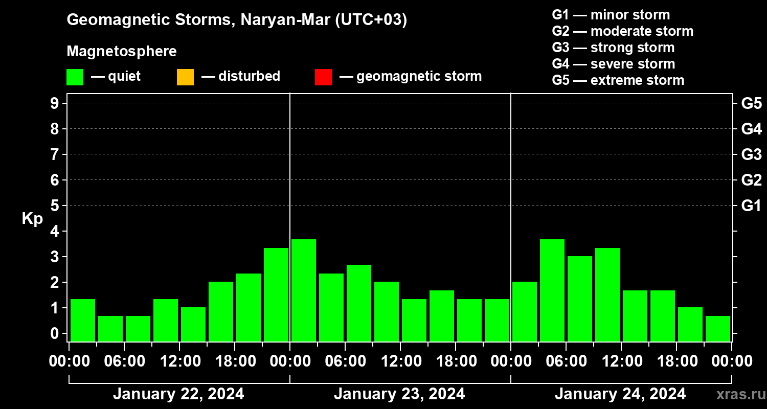 Geomagnetic storms in Naryan-Mar — Jan 24, 2024