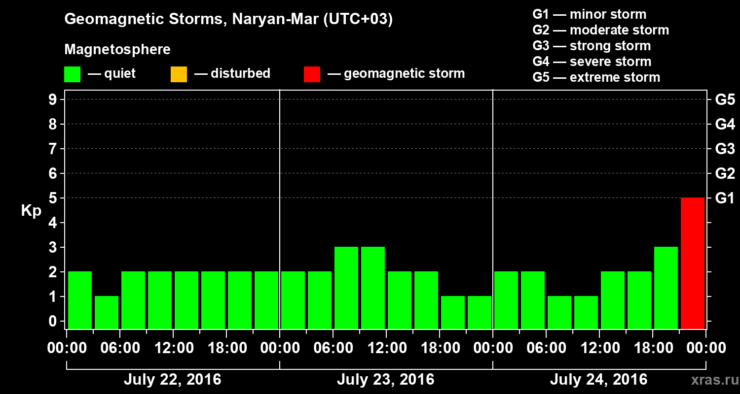 Geomagnetic storms in Naryan-Mar — Jul 24, 2016