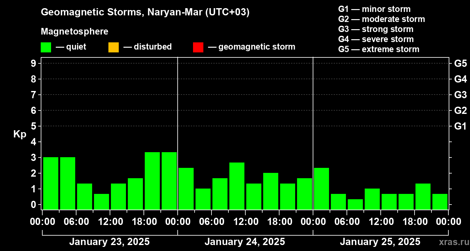 Geomagnetic storms in Naryan-Mar — Jan 25, 2025