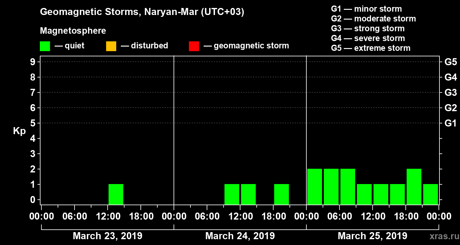 Geomagnetic storms in Naryan-Mar on Mar 25, 2019