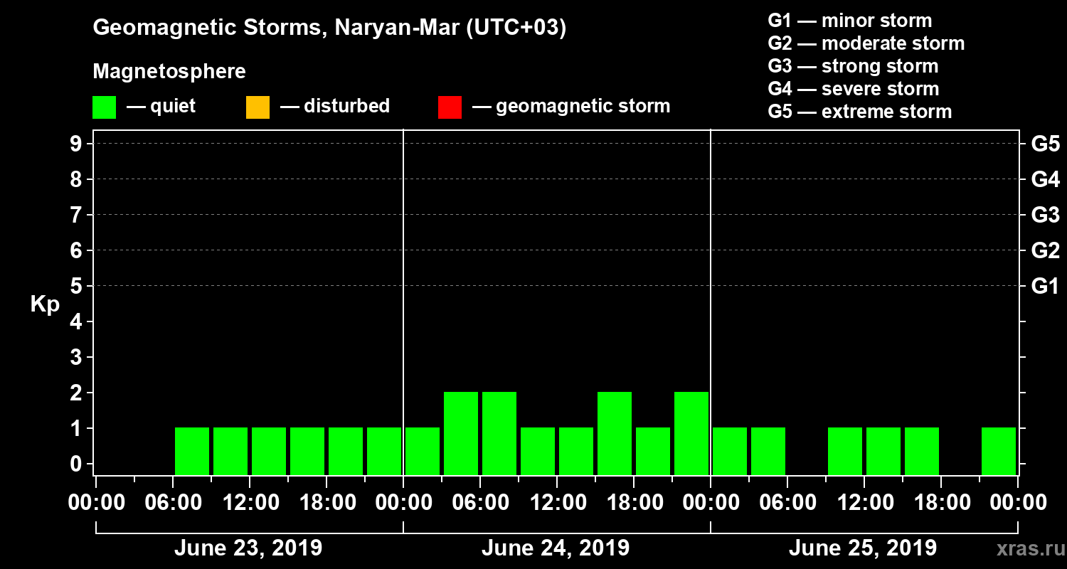 Geomagnetic storms in Naryan-Mar on Jun 25, 2019