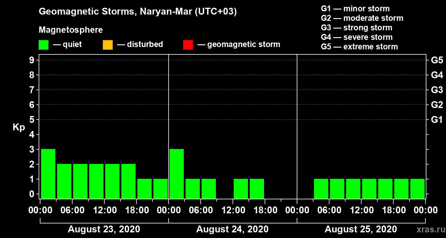 Geomagnetic storms in Naryan-Mar — Aug 25, 2020