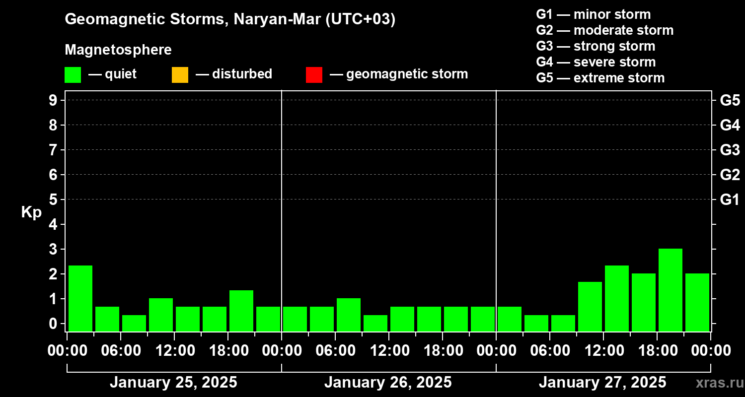 Geomagnetic storms in Naryan-Mar — Jan 27, 2025