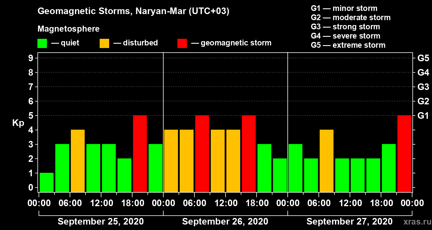 Geomagnetic storms in Naryan-Mar — Sep 27, 2020