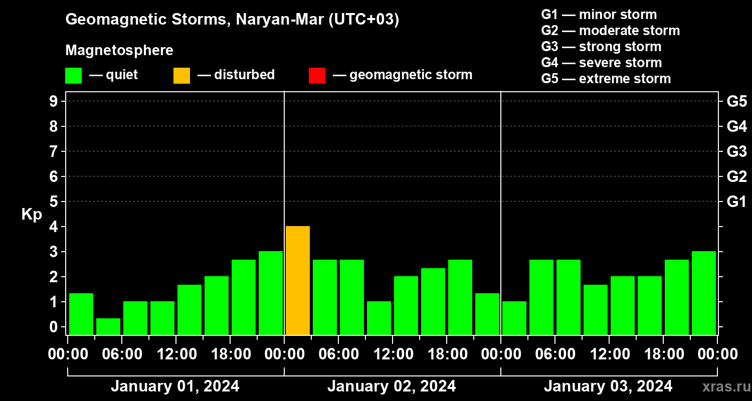 Geomagnetic storms in Naryan-Mar — Jan 03, 2024
