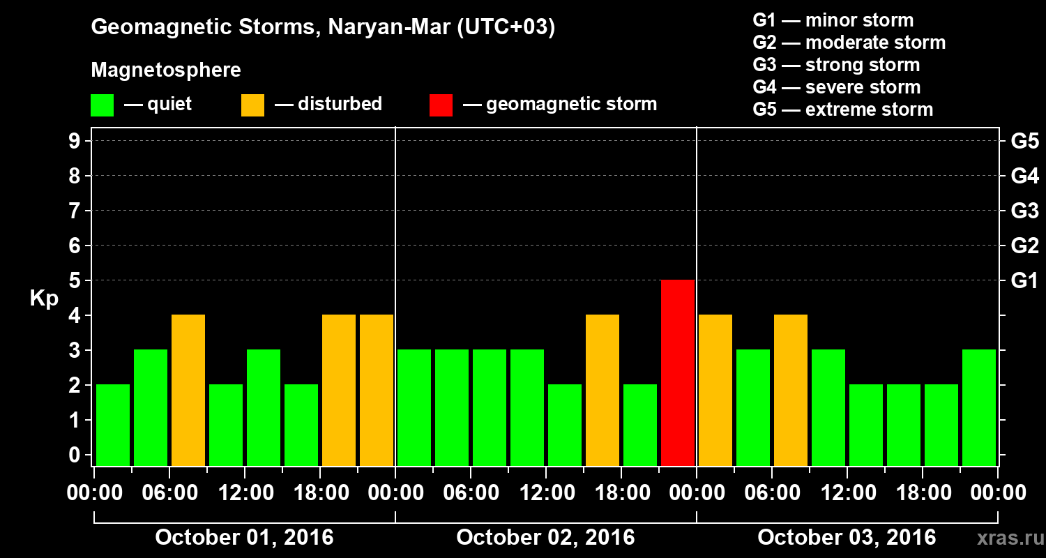 Geomagnetic storms in Naryan-Mar — Oct 03, 2016