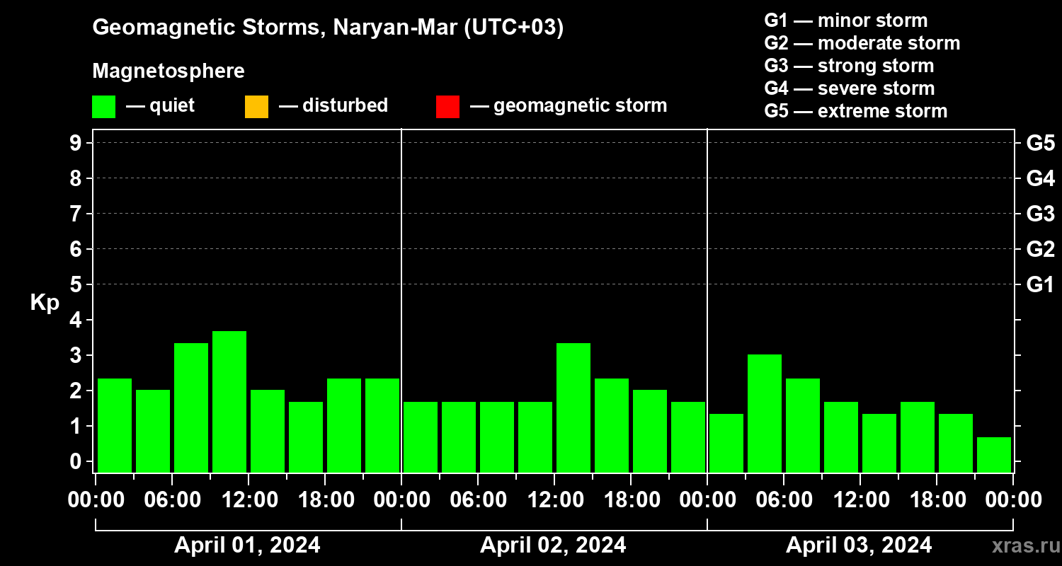 Geomagnetic storms in Naryan-Mar — Apr 03, 2024