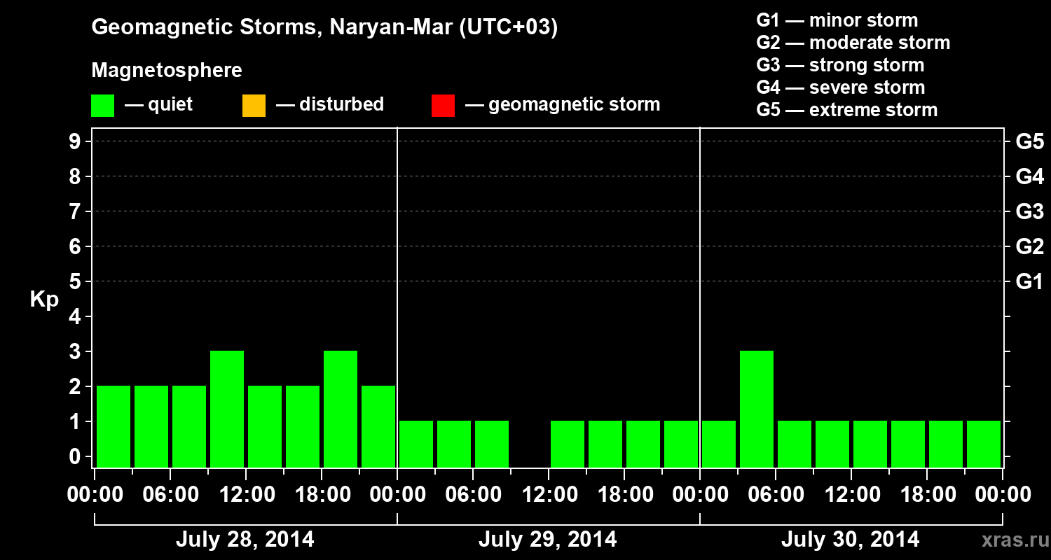 Geomagnetic storms in Naryan-Mar — Jul 30, 2014