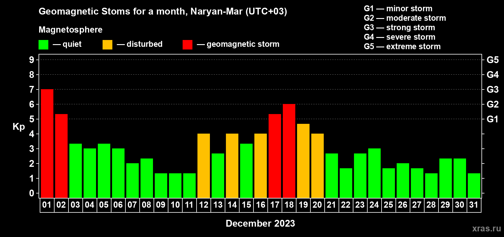 Geomagnetic storms in Naryan-Mar — Dec 31, 2023