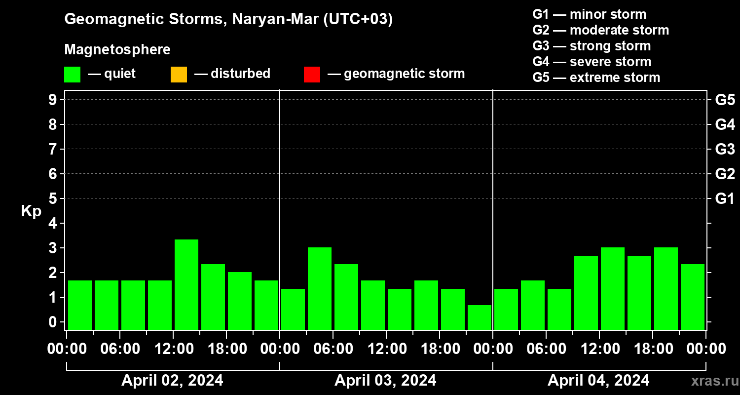 Geomagnetic storms in Naryan-Mar — Apr 04, 2024