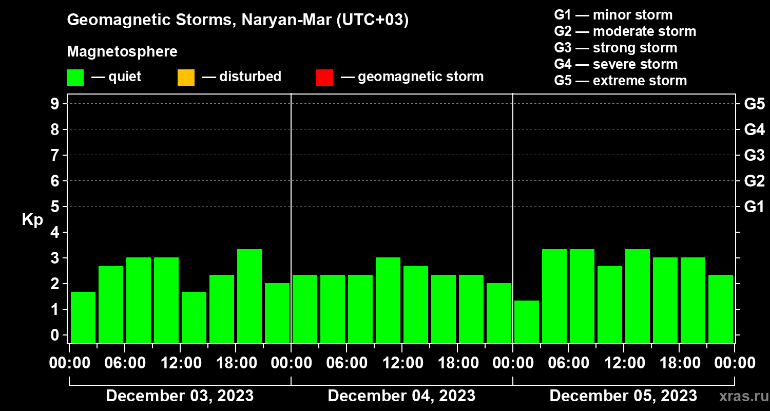Geomagnetic storms in Naryan-Mar on Dec 05, 2023