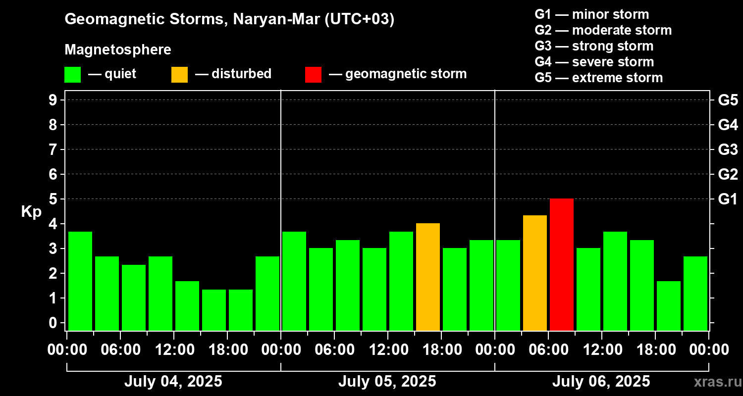 Geomagnetic storms in Naryan-Mar — Jul 06, 2025